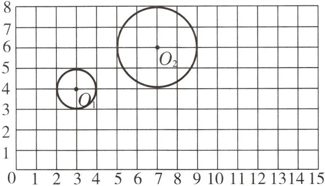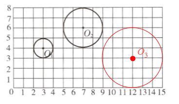 圆$O_{1}$半径为$1$个单位长度,则圆$O_{3}$半径为$3$个单位长度,以$O_{3}(12,3)$为圆心,$3$个单位长度为半径画圆(画图略)。