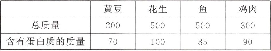 1. 几种食物中含有蛋白质的质量见下表。(单位: g)