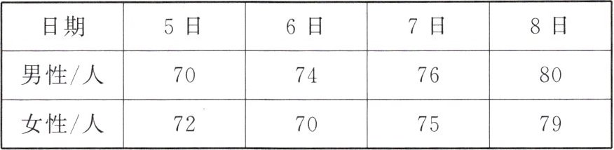 (1)8日参加晨练的人数最多,5日参加晨练的人数最少。
