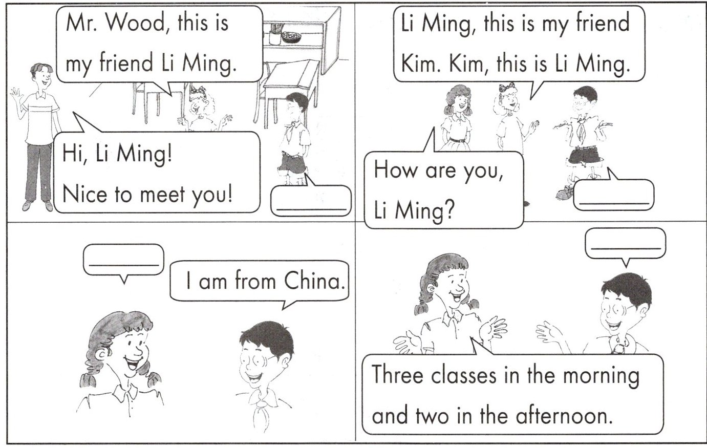 3. Read and choose. 读一读,把句子标号填到对话框中。