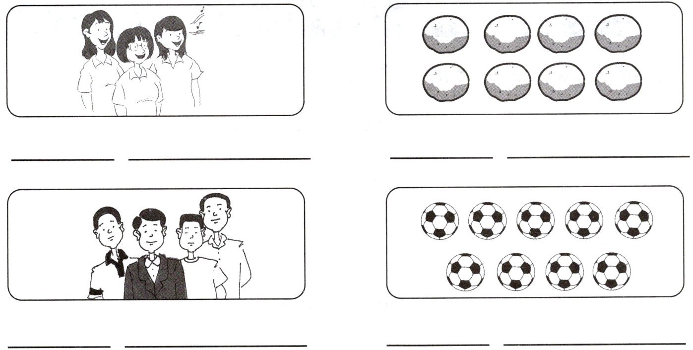 1. Listen and write. 听音,把人物单词写在相应的方框内。