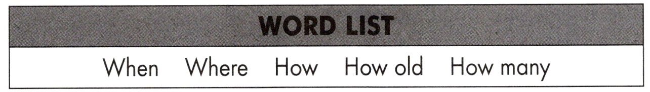a. How old b. Where c. When d. How many e. What