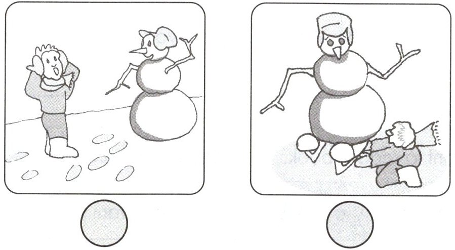 ) d. John put his skates under the snowman.(