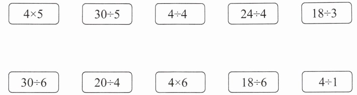 $\boxed{4×5}$ $\boxed{30÷5}$ $\boxed{4÷4}$ $\boxed{24÷4}$ $\boxed{18÷3}$