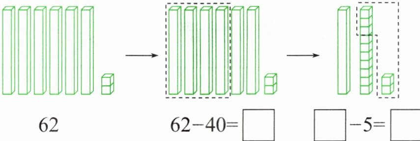 $62 - 40 = □$ $□ - 5 = □$