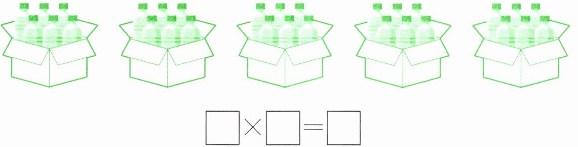 (2)每箱有( )瓶水,有( )箱,一共有( )瓶水。