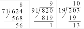 答案依次为:把$71$看作$70$,$8\cdots\cdots56$;把$91$看作$90$,$9\cdots\cdots1$;把$19$看作$20$,$10\cdots\cdots13$。