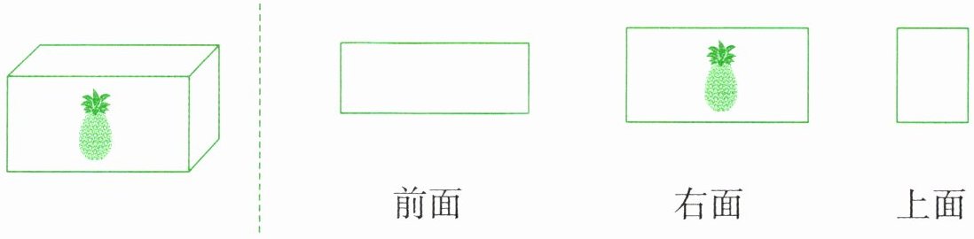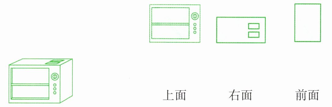 1. 下面的图形分别是从哪个位置看到的?填一填。(填“前面”“上面”或“右面”)