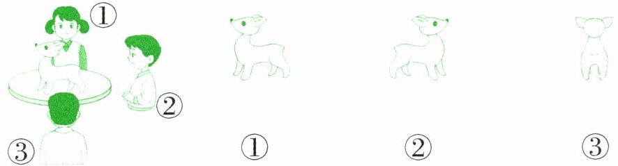 2. 下面的图片分别是从哪个位置看到的?连一连。