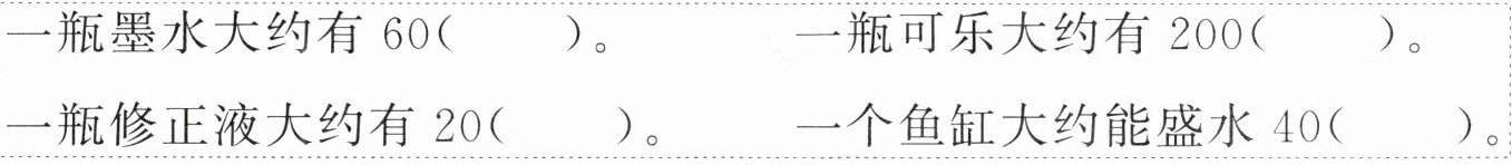 结合生活实际,在括号里填上“升”或“毫升”。