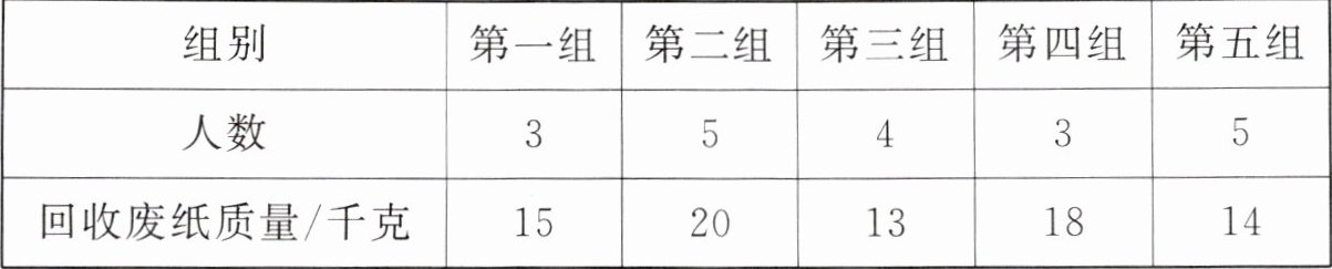 (1)15+20+13+18+14=80(千克)80÷5=16(千克)答:平均每组回收16千克废纸。(2)80÷(3+5+4+3+5)=4(千克)答:平均每人回收4千克废纸。(3)80×6=480(角) 480角=48元答:一共可以卖48元。
