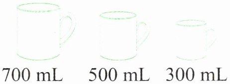 5. 如图,三个杯子的容量分别为700mL,500mL和300mL。请用这三个杯子量出100mL的水。(简要写出过程)