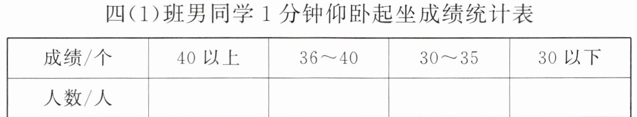 四(1)班男同学1分钟仰卧起坐成绩:39 29 38 36 32 28 39 28 33 37 40 42 37 32 35 29 31 34 33 38