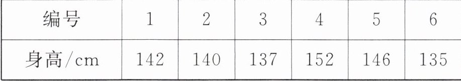 (1)$(142+140+137+152+146+135)÷ 6=142$(厘米)