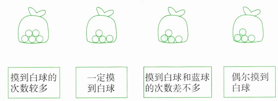 (2)轩轩做摸球游戏,他一共摸了 50 次,其中摸到蓝球 48 次,黄球 2 次。根据目前的数据推测,盒子里球的颜色最有可能是(