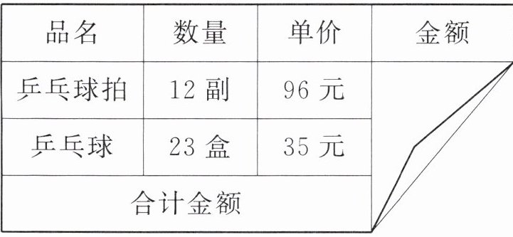 5. 四年级要举办乒乓球比赛,李老师购买了乒乓球拍和乒乓球,购物小票如图。他一共花了多少元?
