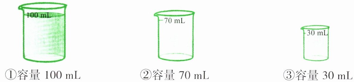 先将①量杯里的水倒满③量杯,从③量杯再倒入②量杯,直至②量杯满;再将②量杯里的水全部倒入①量杯,③量杯里的水全部倒入②量杯;最后将①量杯里的水倒满③量杯,再从③量杯倒入②量杯,此时②量杯里的水是50毫升。