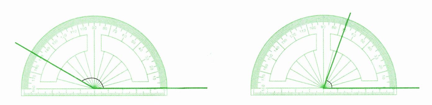 [发现]每次测量时,$∠1$的顶点都要和被测量角的顶点对齐。
