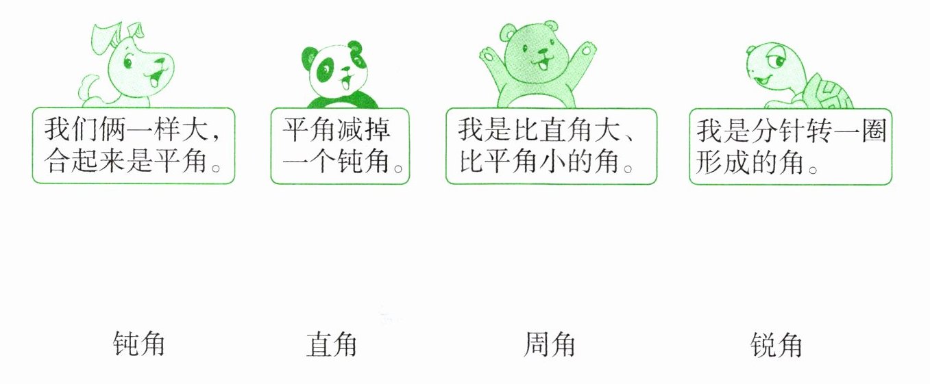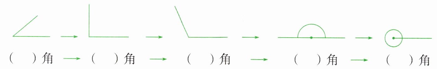 2. 做一个活动角,按下图的次序转动其中一条边,依次写出得到的是什么角。