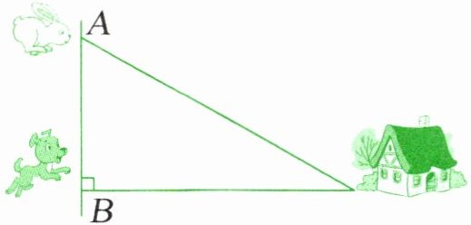 4. 小狗和小兔子赛跑,它们同时从点A和点B向小房子处跑去。如果它们的速度相同,你觉得谁会赢?为什么?