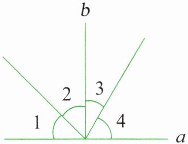 5. 如图,直线a和直线b互相垂直,∠1= ∠2,∠3= 30°。求∠1和∠4的度数。