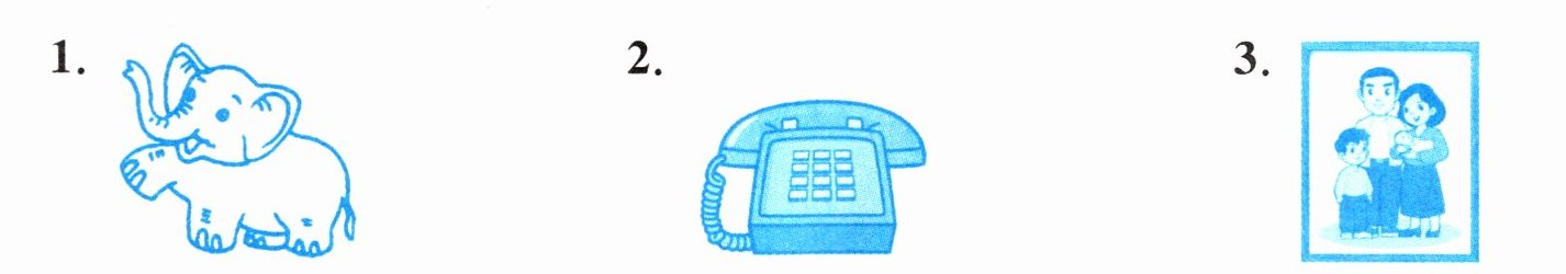 1. elephant 2. phone 3. photo