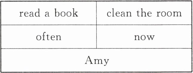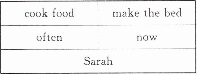 1. reads;book;cleaning the room 2. Sarah often cooks food. Sarah is making the bed now.