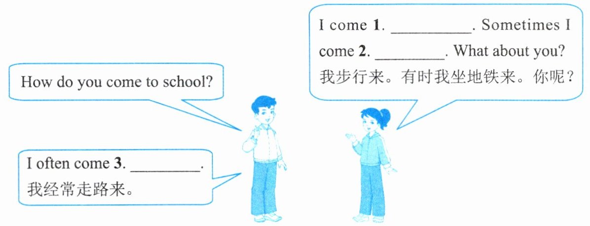 你刚到学校就遇见了自己的同学,你们聊起了到校的交通方式……