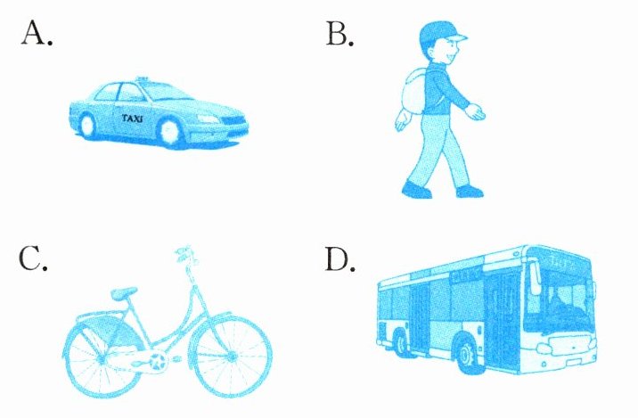 1. I go to school by bike. 2. She goes to work by car. 3. He goes to work by bus.