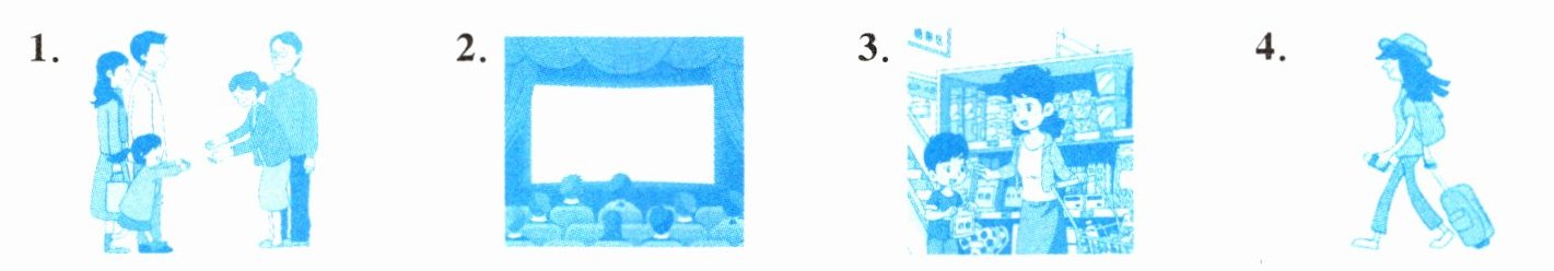 1. visit my grandparents 2. see a film 3. go to the supermarket 4. take a trip