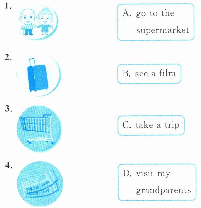 1. B. take a trip (√) 2. A. wash clothes (√) 3. B. tomorrow (√) 4. B. visit my grandparents (√) 5. A. see a film (√)
