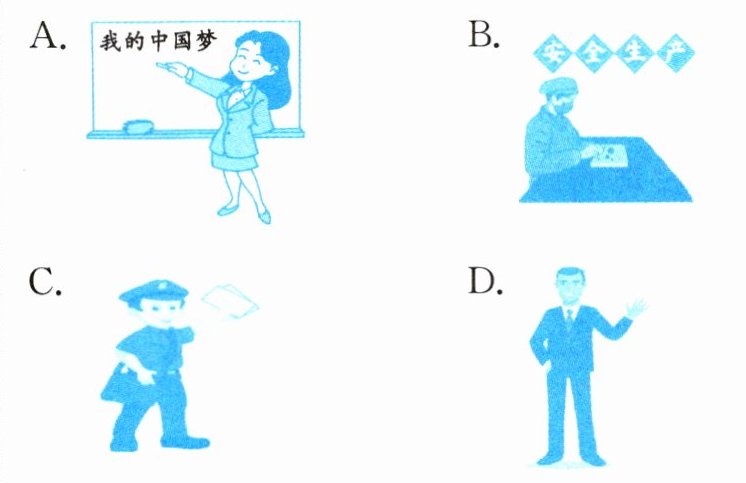 1. D; businessman 2. A; teacher 3. C; postman 4. B; worker