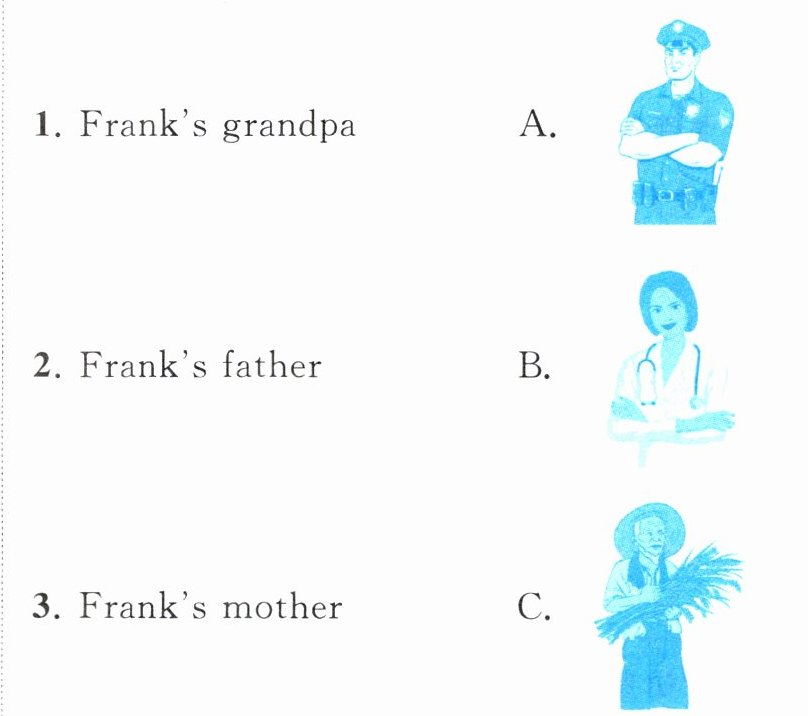 My name is Frank. I am from Australia. I am 12 years old. I want to be your friend. I’d like to introduce my family to you. My grandpa is a farmer. He likes planting vegetables and flowers. My father is a police officer. But he isn’t strict. He is kind. My mother is a doctor. She works in a hospital. She goes to work by car. I am a pupil. I go to school on foot. What about your family? Please write to me soon.