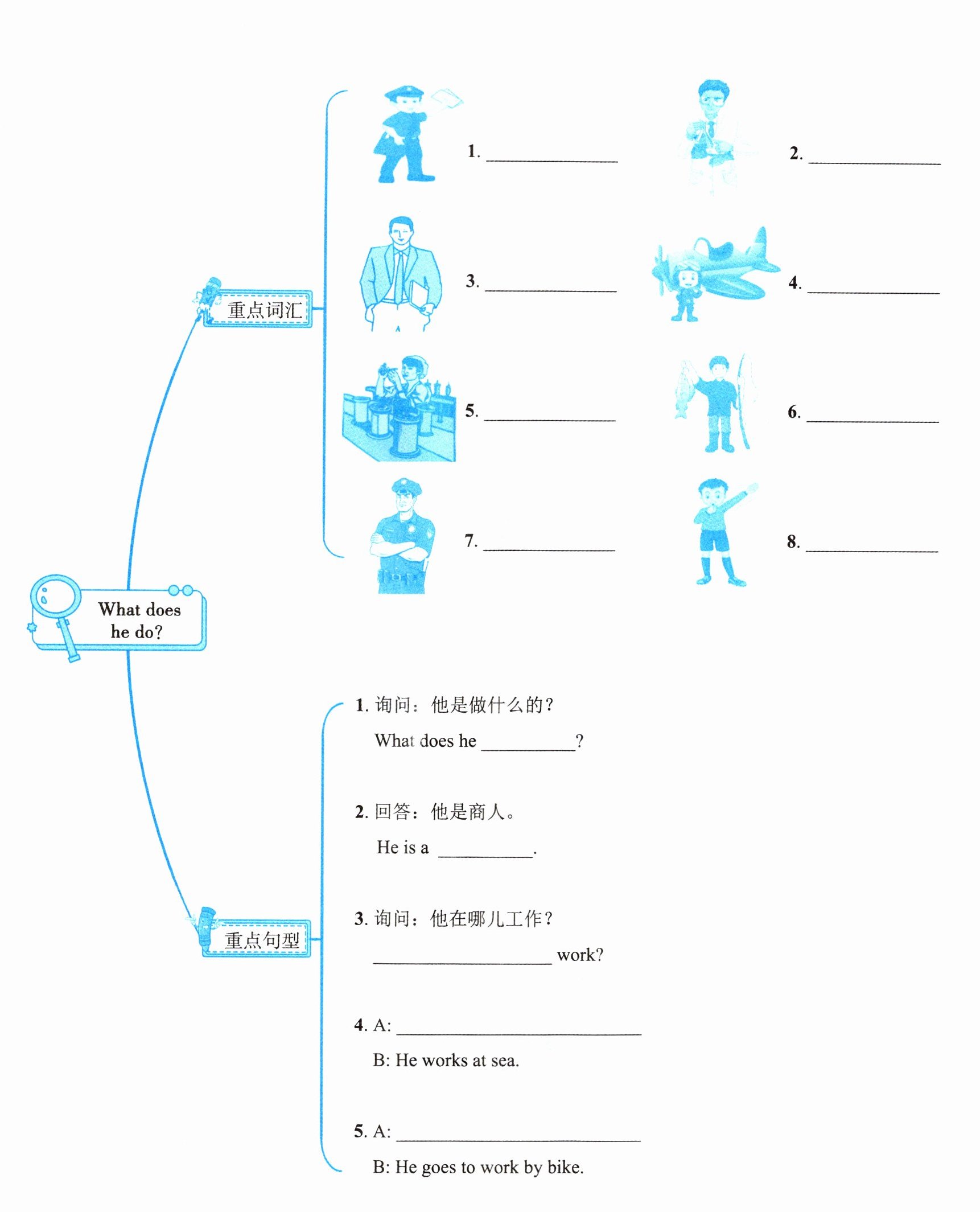 4. pilot 5. factory worker 6. fisherman