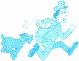 B. The postman is chasing the dog.