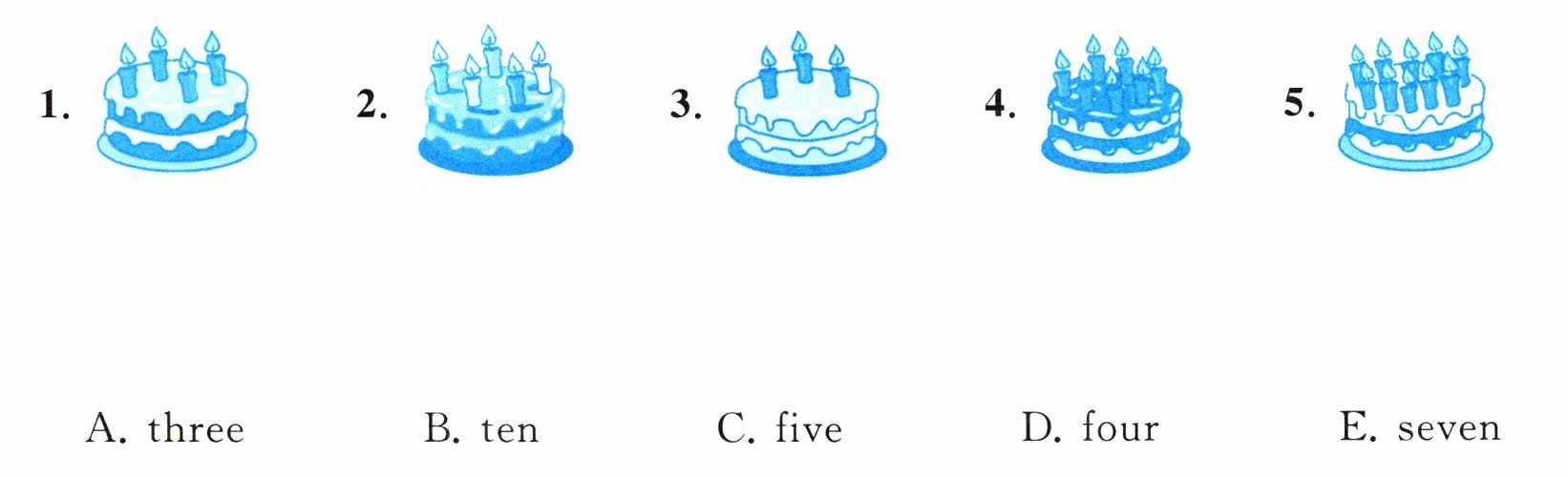 二、数一数蛋糕上有几根蜡烛,与相应的数字连一连。