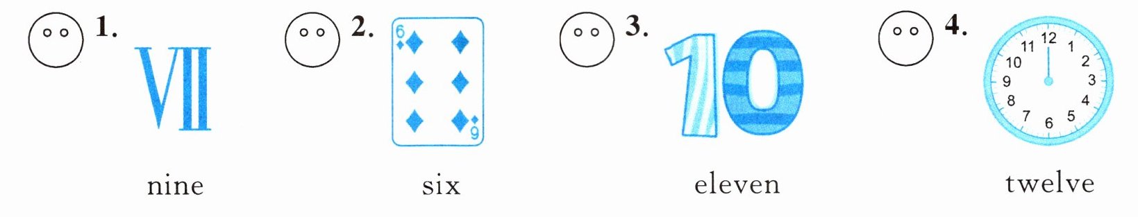 三、判断所给单词与图片表示的数字是否一致,一致的画“☺”,不一致的画“☹”。