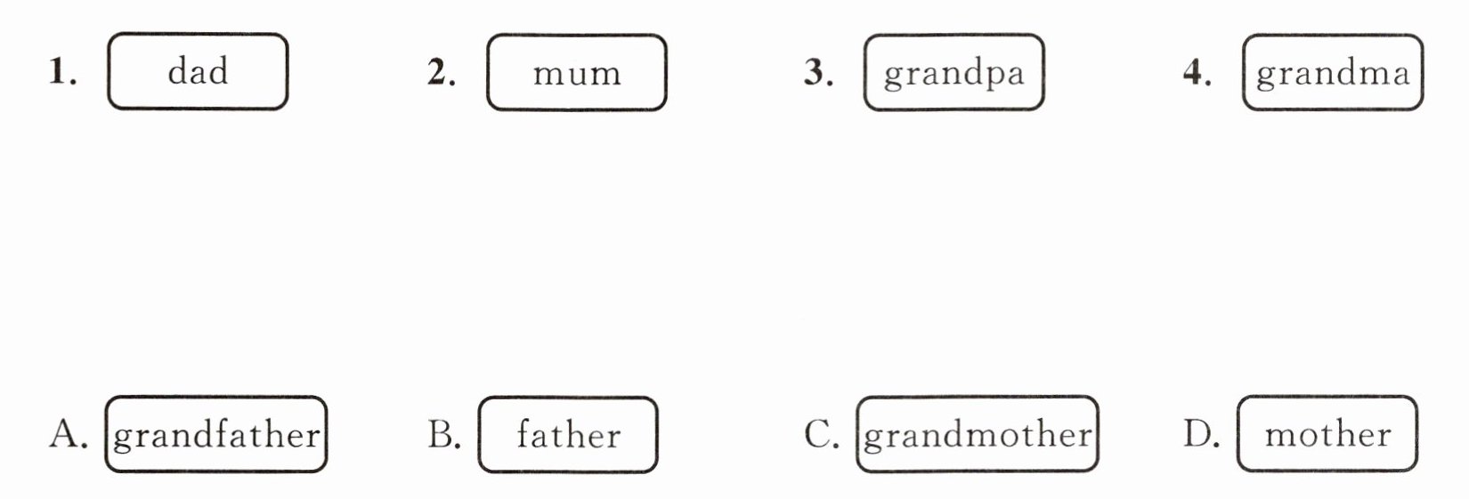 一、给图片中的人物选择合适的单词,将序号填在圆圈里。