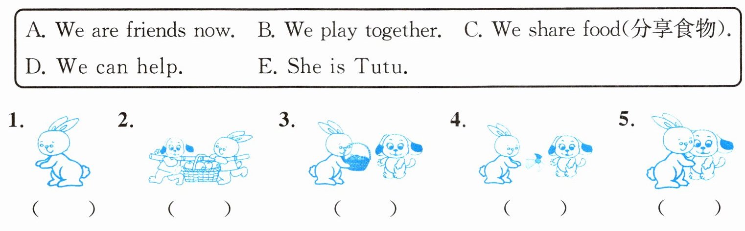 三、请你在方框中画出你现实生活中的好朋友,并用下面的句型向大家介绍一下他/她吧!