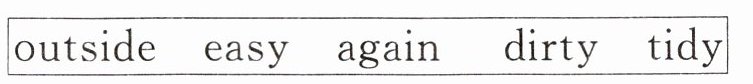 1. tidy 2. dirty 3. again 4. easy 5. outside