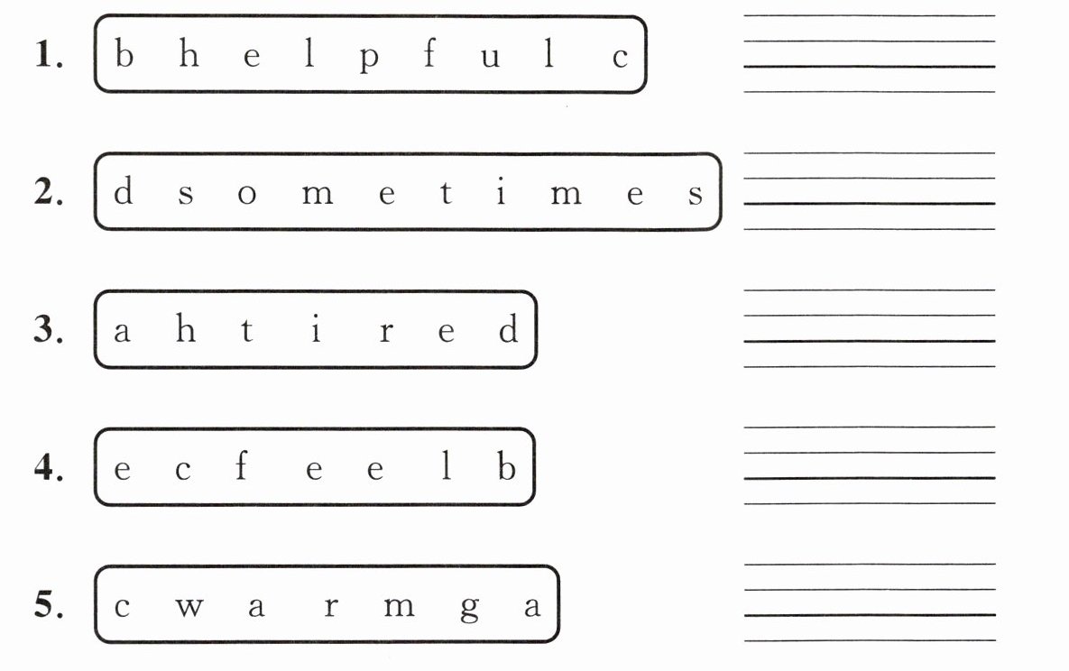 1. helpful 2. sometimes 3. tired 4. feel 5. warm 书写略