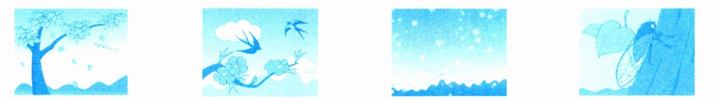 一、每个季节都有独特的风景。看图,写出对应的季节单词。