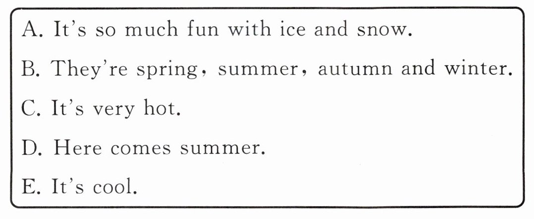 We have four seasons in a year. 1. ____ In spring,it’s warm. 2. ____