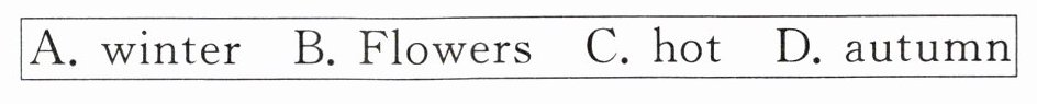 The trees are green. 3. ____ In autumn,the trees are yellow. 4. ____ It’s snowy and very cold in winter. 5. ____