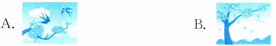 一、同学们在介绍自己最喜欢的季节。读句子,选择合适的图片。