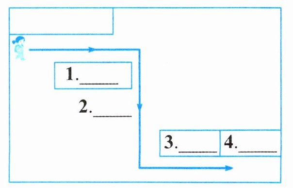 三、阅读对话,选择合适的地点,将选项填在图中横线上。