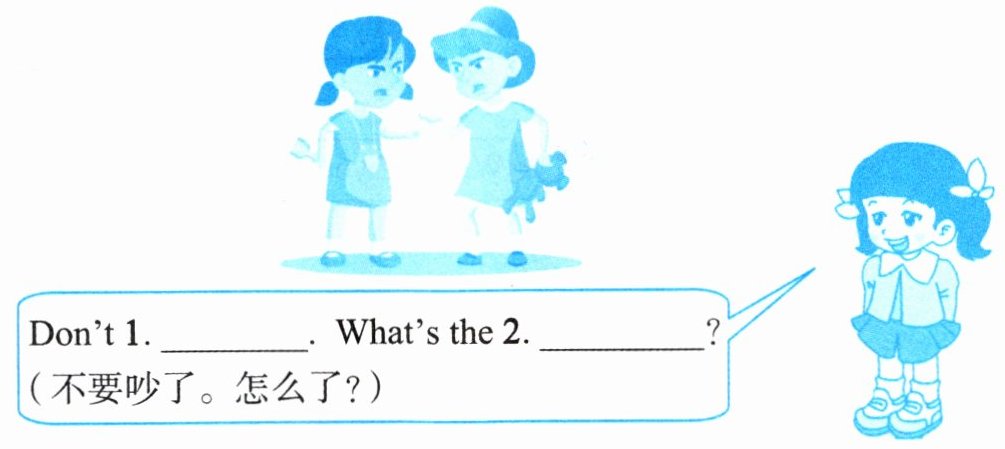 演 小丽看到有人吵架,她会说什么呢?用英语表达出来。