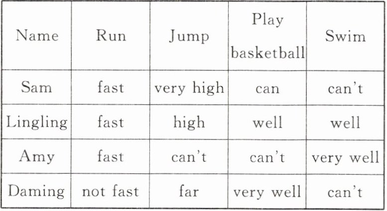 )5. ______ can't run fast.A. Sam B. Daming C. Amy