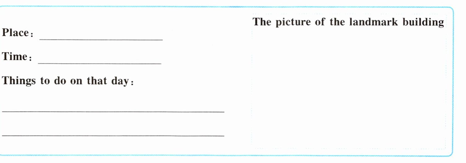 Place:Beijing;Time:Last summer holiday;Things to do on that day:Visited the Great Wall and the Palace Museum;The picture of the landmark building:无 (实际答题可根据自身经历填写)。