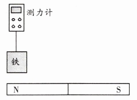 用弹簧测力计吊着铁块靠近磁铁,将它移到与磁铁距离相同的不同地方,读出测力计的拉力大小。若测力计的拉力大小改变,能说明磁铁的不同部位对铁块的吸引力不同。